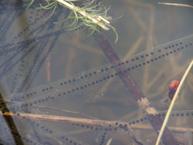 Die Eier des Erdkrötenweibchens werden als mehrere Meter lange Laichschnüre ins Wasser abgesetzt.